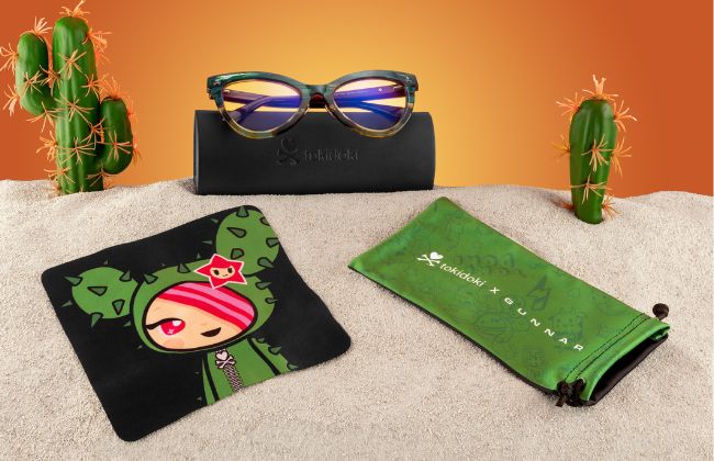 Inspirés par Sandy et ses amis cactus, ces cadres Tokidoki x Gunnar offrent la protection ultime contre la lumière bleue et les yeux secs. En forme d'oeil, l'acétate fabriqué à la main brille avec des tonnes de cactus de vert, brun et noir. Les charnières à ressort flexibles, les coussinets de nez réglables et les revêtements d'objectifs premium G-Shield® ajoutent au niveau de performance légendaire. Le tissu de nettoyage en microfibre exclusif, la poche et le boîtier présentent Sandy et ses amis. Zippez une paire et obtenez un costume de cactus pour vos yeux!