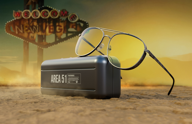 Chaque paire est livrée avec des accessoires haut de gamme, notamment un étui de collection en métal « Area 51 », une pochette en microfibre arborant le logo de la Confrérie et un chiffon de nettoyage en microfibre personnalisé avec des motifs Fallout.